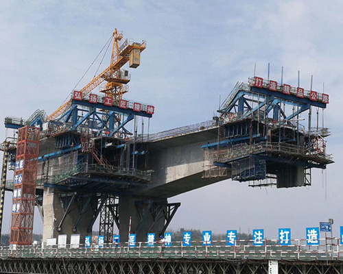 掛藍施工是現(xiàn)澆橋梁施工方案中的一種,按掛藍主桁架結(jié)構(gòu)型式可分為菱形掛藍和三角形掛藍,其中菱形掛藍具有受力合理、滑動式走行、尾部無配重、一次走行到位、重量輕、安裝簡易、適應能力強、安裝方便、施工造價低等特點,適用于各種斷面及跨度的整孔現(xiàn)澆橋梁的施工。